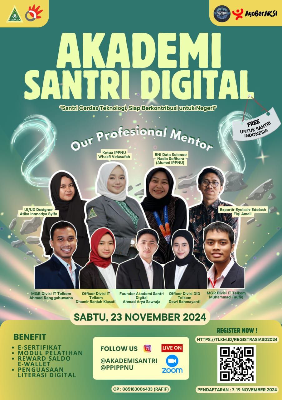 Akademi Santri Digital hadir untuk menciptakan santri yang unggul, berkarakter, dan siap menghadapi tantangan era digital. Kami fokus pada pengembangan diri, peningkatan keterampilan, serta penambahan knowledge di bidang teknologi, kewirausahaan, dan pengembangan masyarakat.